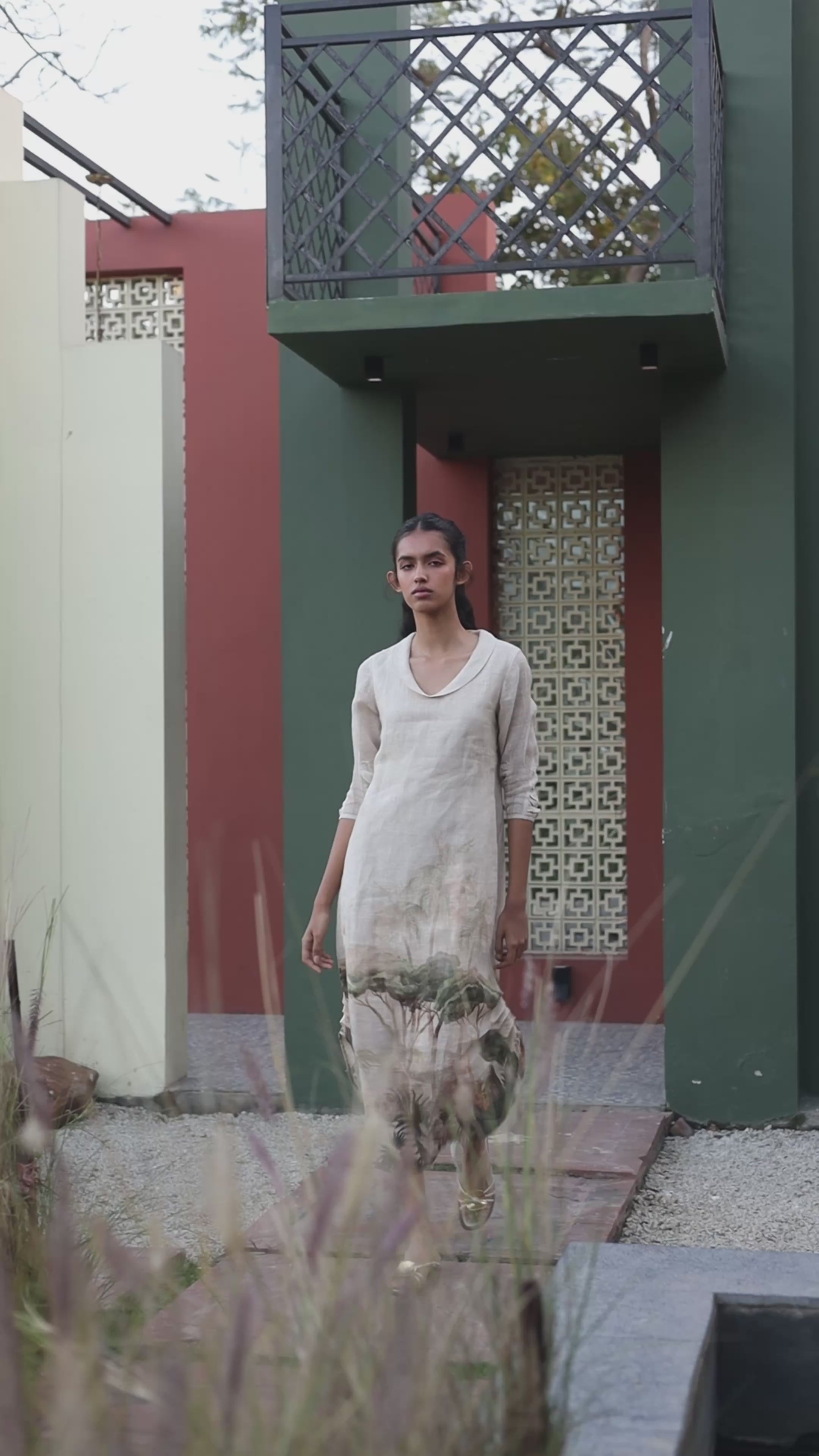 This vibrant, multi-coloured dress showcases unique, original prints, making it a true statement piece. Walk into a room and spark conversations with the Iris Dress. Crafted from sustainable and ultra-comfortable gauze linen, it blends effortless style with eco-conscious fashion. The delicate ruffled detailing on the sides and sleeves adds a soft, floral charm, while functional pockets enhance practicality. Designed with a flattering V-collared neckline, this dress pairs beautifully with minimalistic gold jewellery for a chic and elegant look.