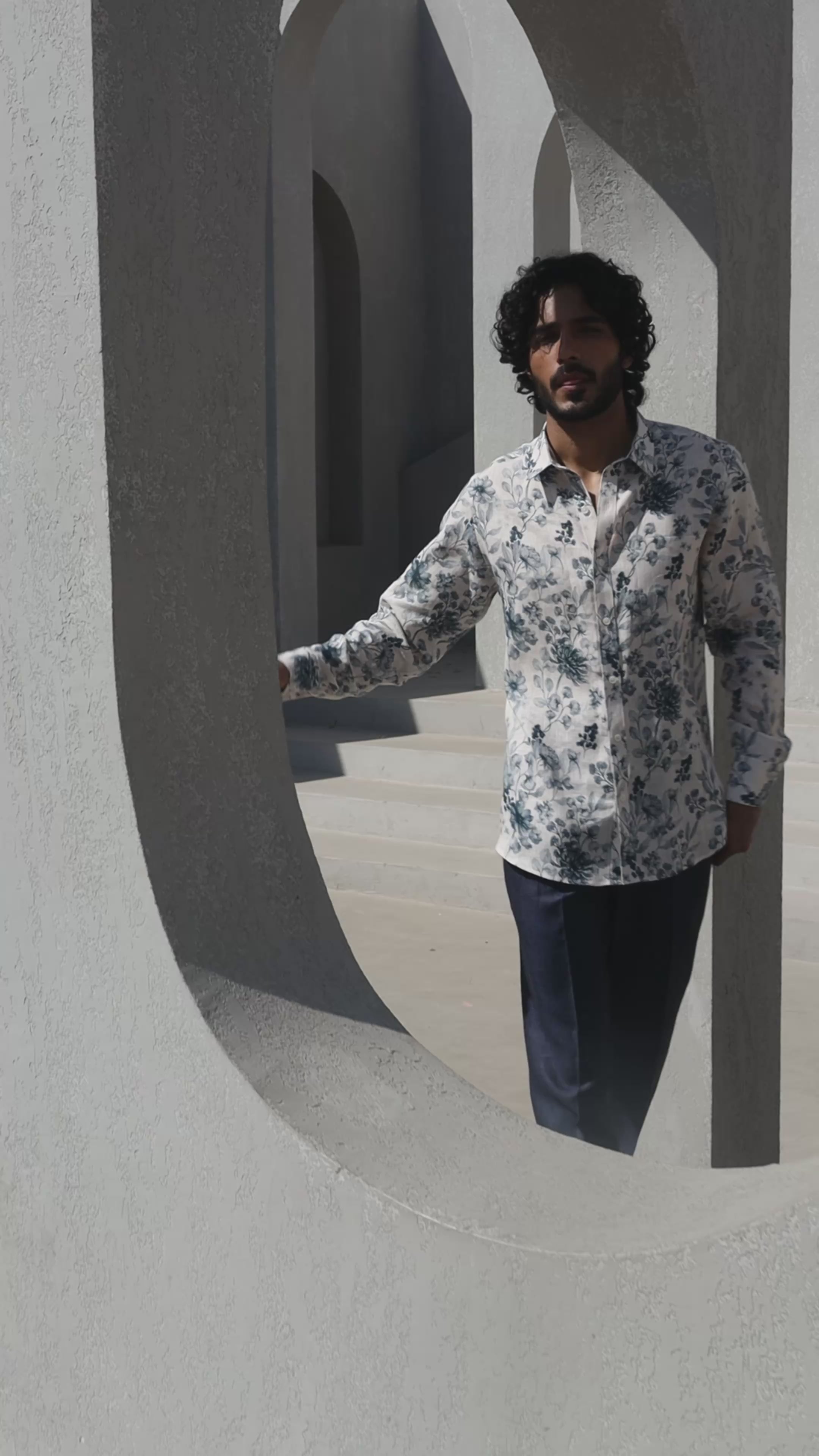 This crisp solid linen shirt features a refreshing floral pattern perfect for the summer. Available in four exquisite shades, each one snazzier than the others, add this to your wardrobe and break away from monotony.