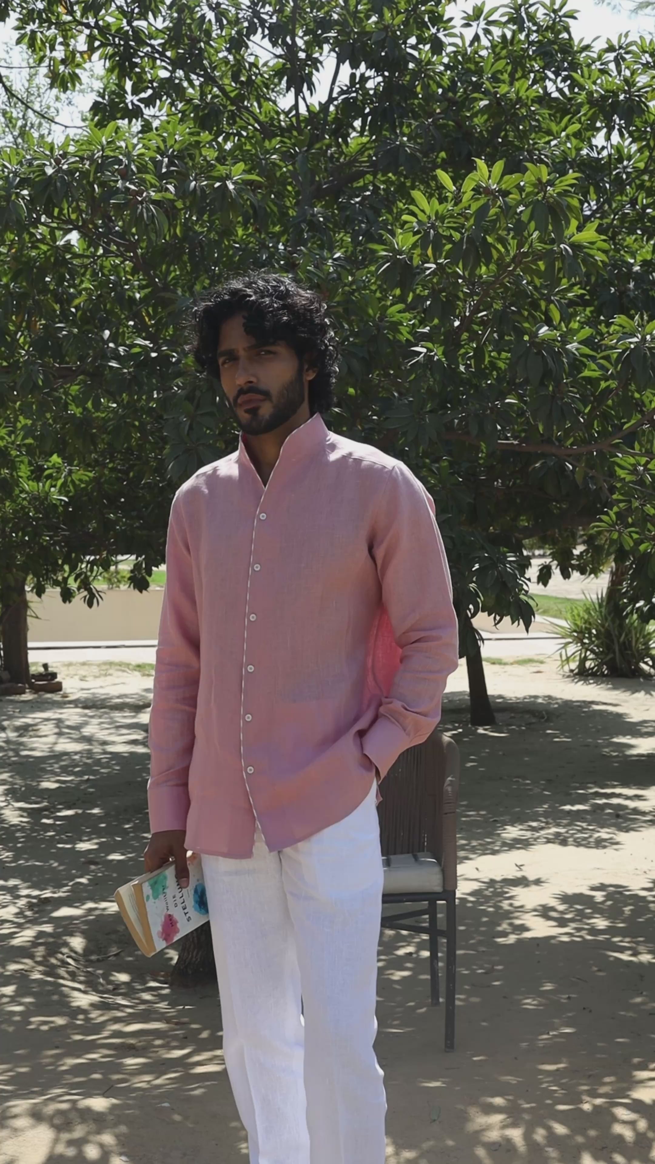 Effortless and eloquent, The Shayar Shirt is crafted for the man whose words carry depth. Made from sustainably sourced fabric, this linen shirt blends timeless style with thoughtful details. The classic silhouette is reimagined with intricate fagoting stitchwork throughout, creating a subtle yet striking texture. Light, breathable, and refined, it’s a men’s shirt designed for those who appreciate the weight of their words as much as the ease of their attire.